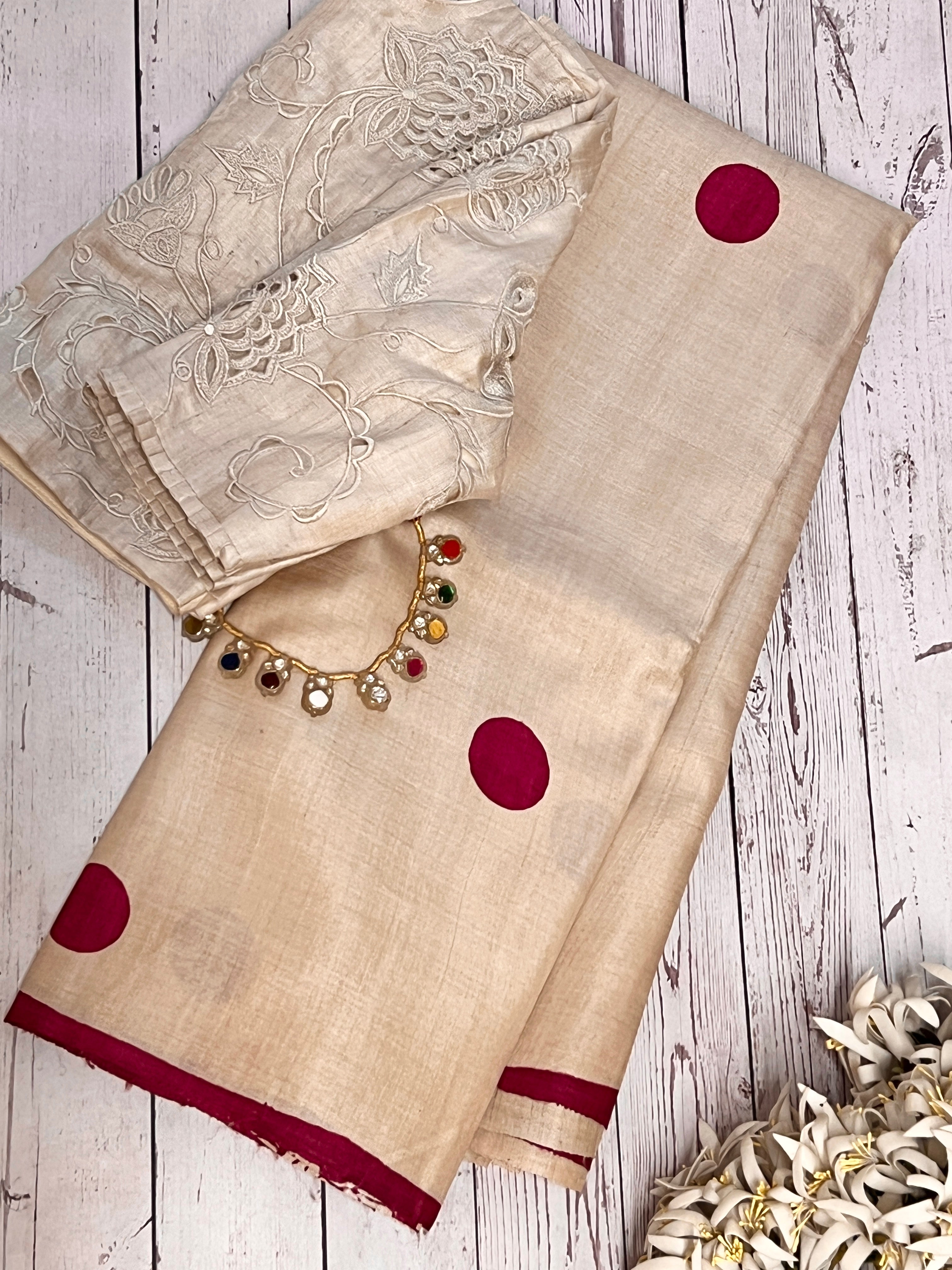 Veena polka tussar saree