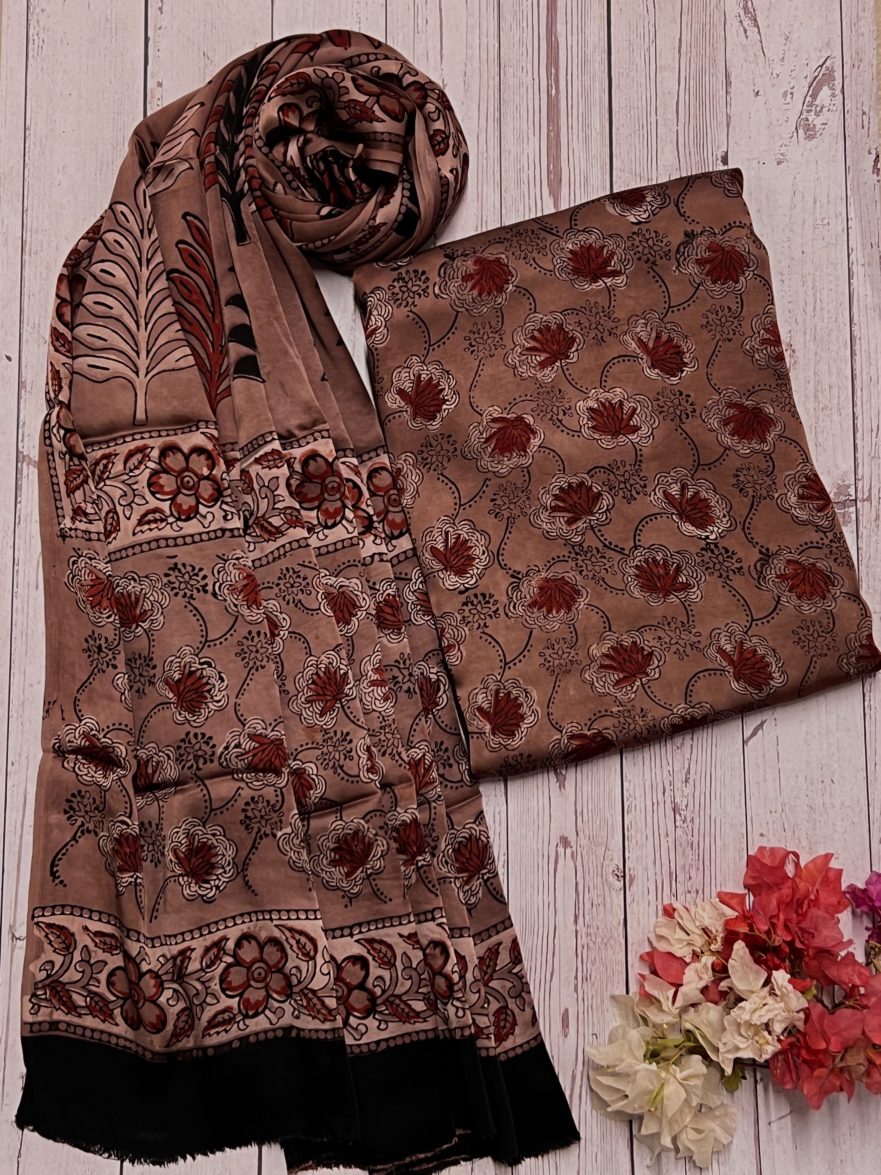 - Handprinted kurta and dupatta