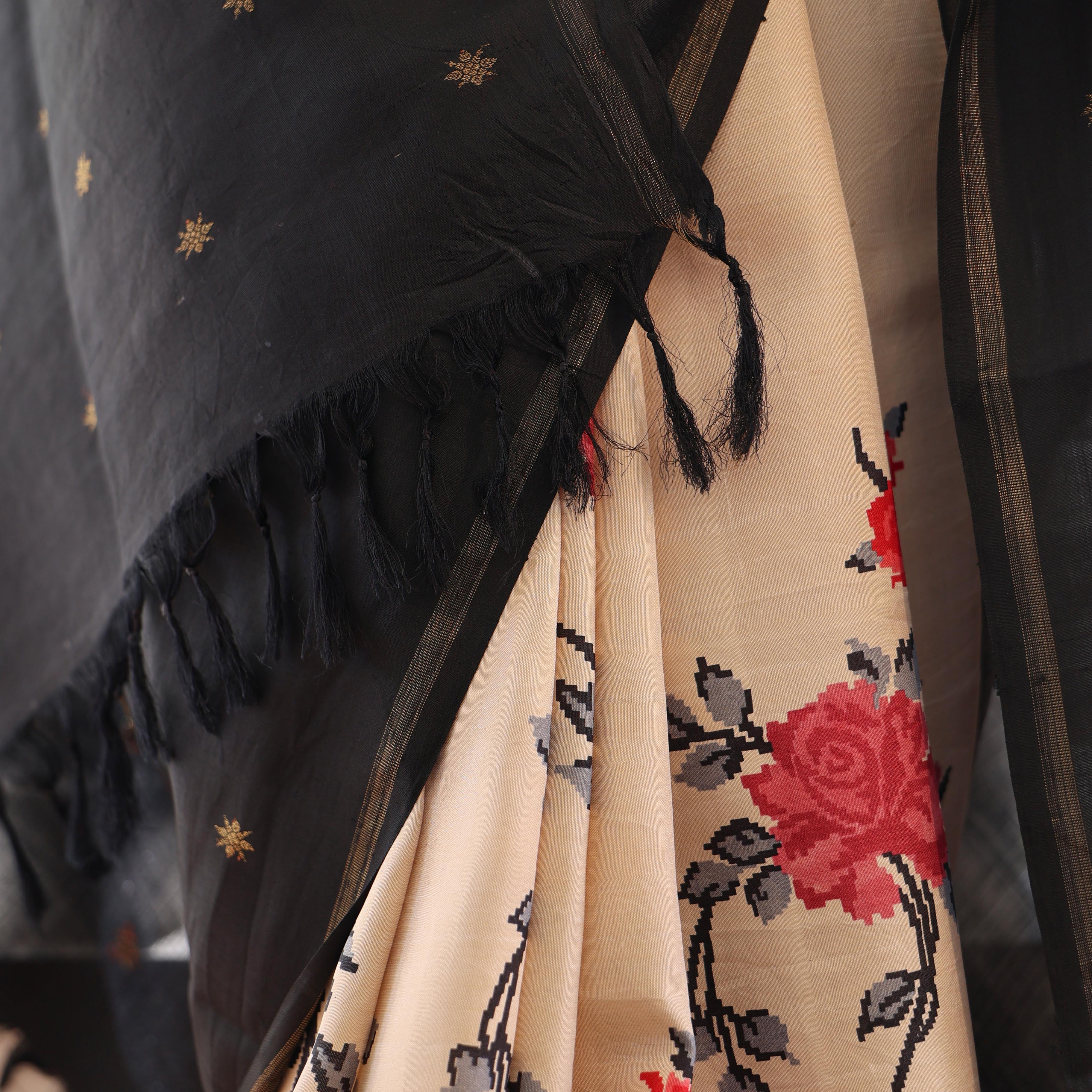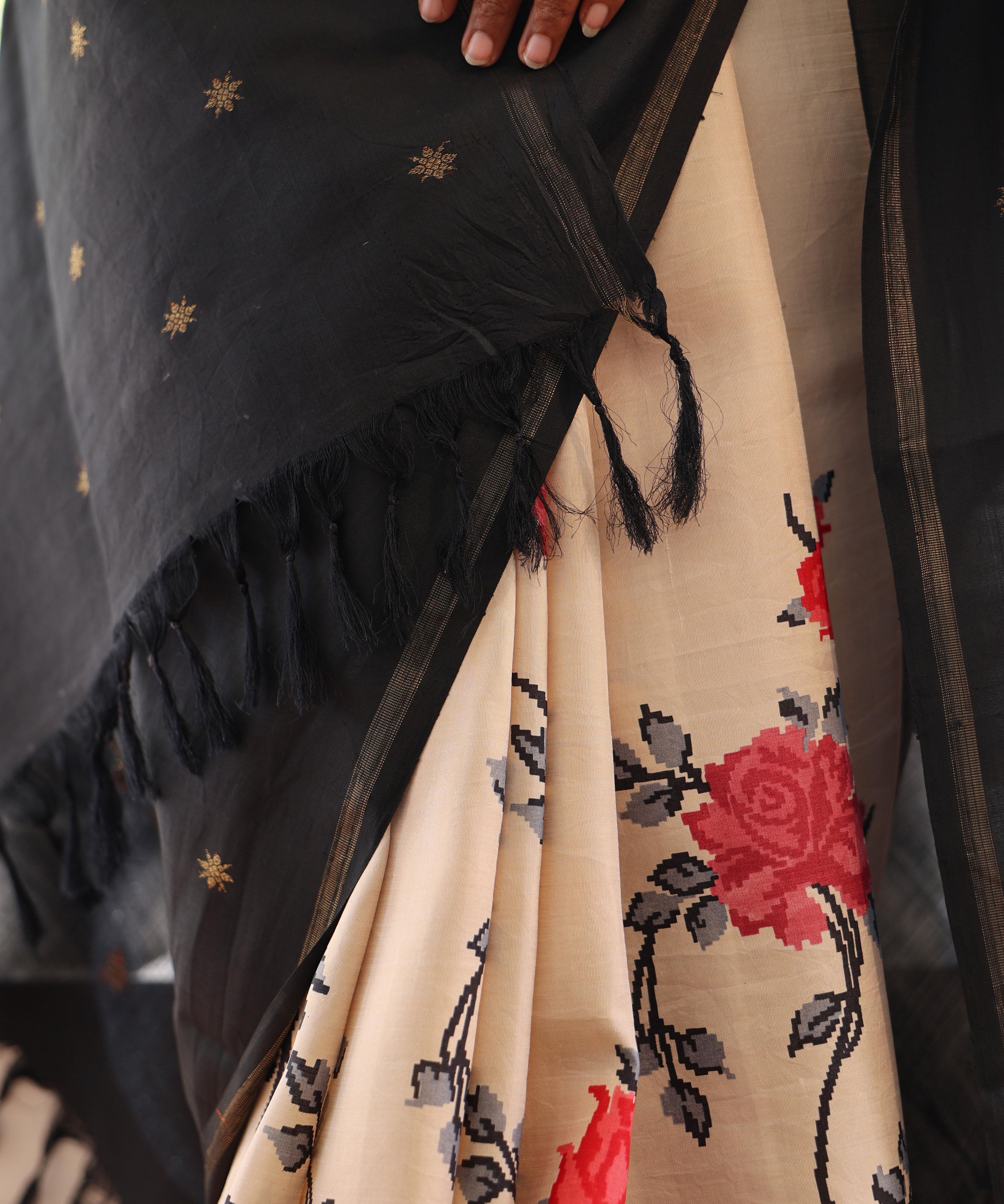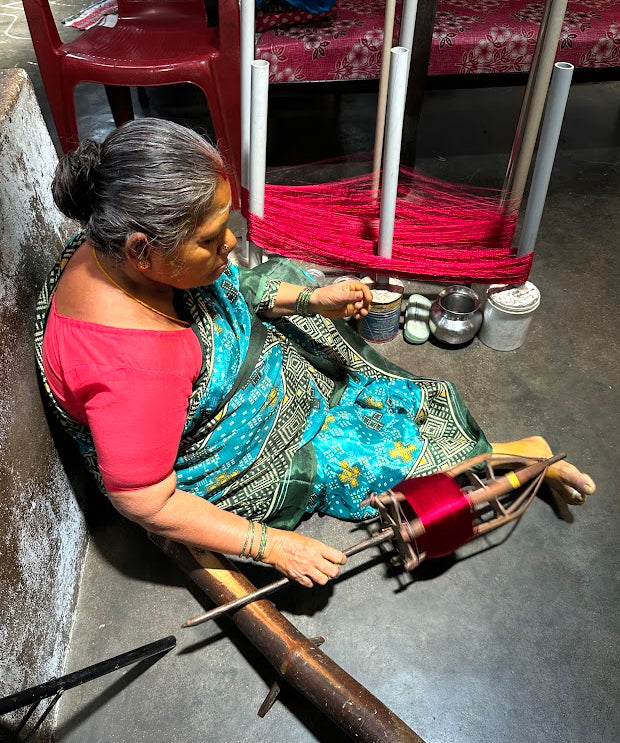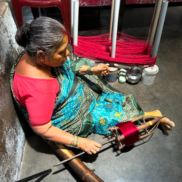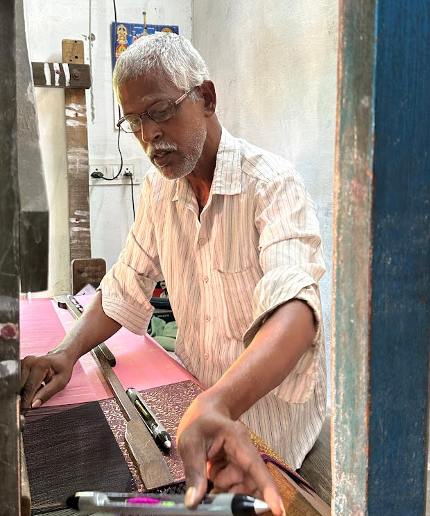 Every saree we create is a testament to the skilled hands of our artisans, whose expertise is woven into each thread. From the intricate weaves of Kanchipuram silk to the delicate hand embroidery that adorns our pieces, we honour India’s age-old craft traditions while embracing thoughtful, sustainable practices. At the heart of Aavaranaa is a commitment to creating garments that not only celebrate cultural heritage but also inspire a deeper connection to conscious living.