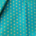 Aquamarine bluish green dual tone handwoven Kanchipuram silk fabric with diamond and dot buttis woven in vertical lines. Note: Pricing by the metre more