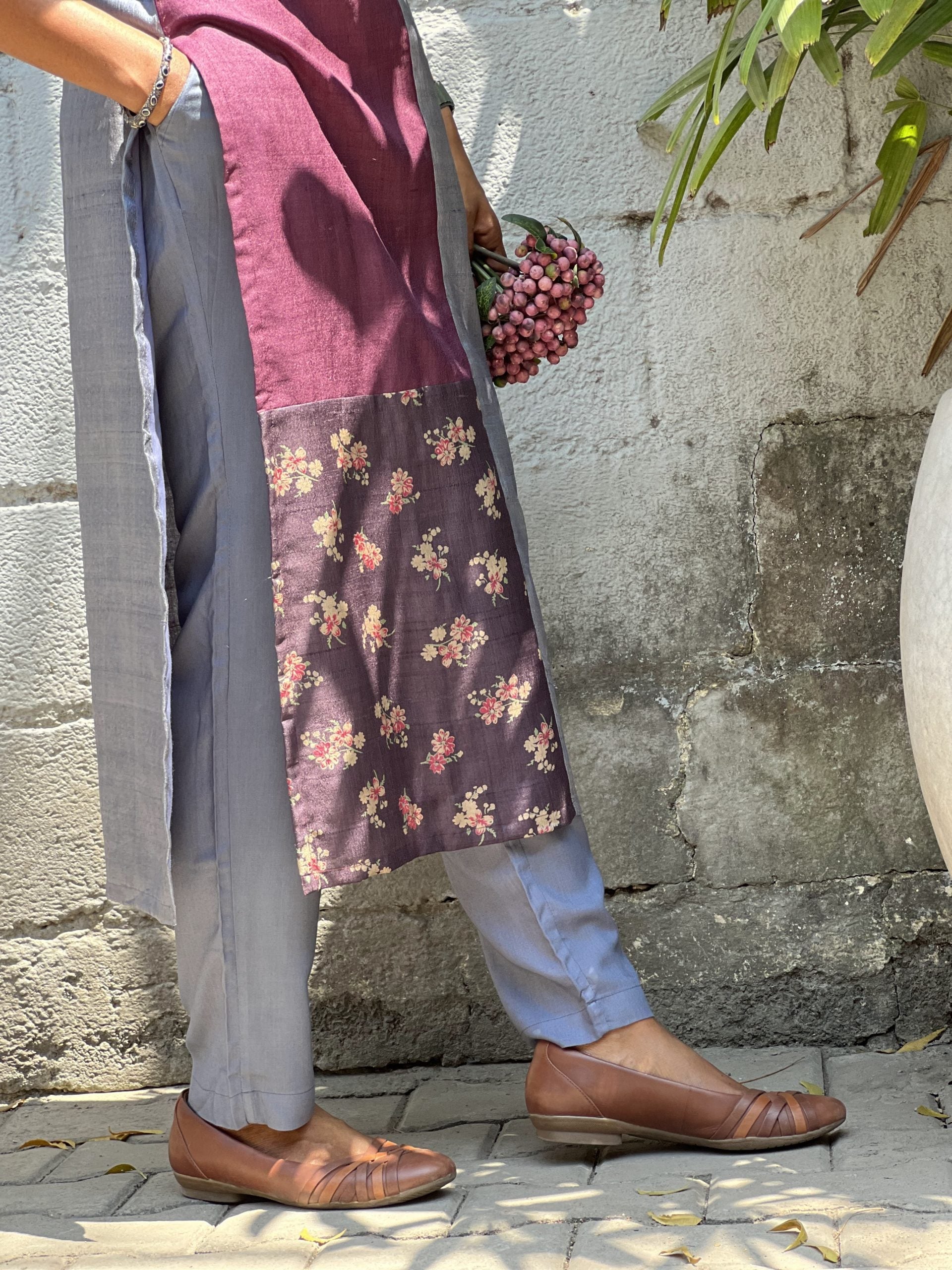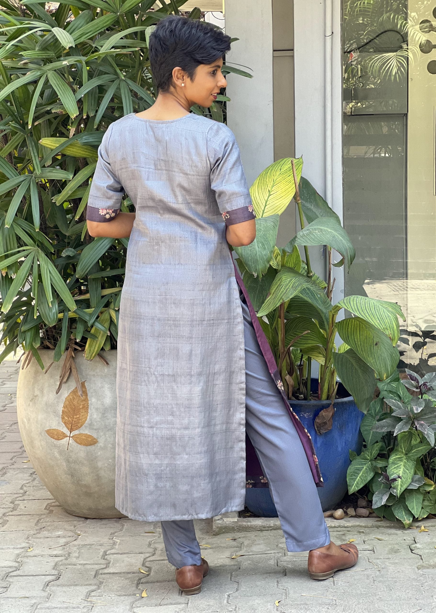Grey soft cotton straight pants